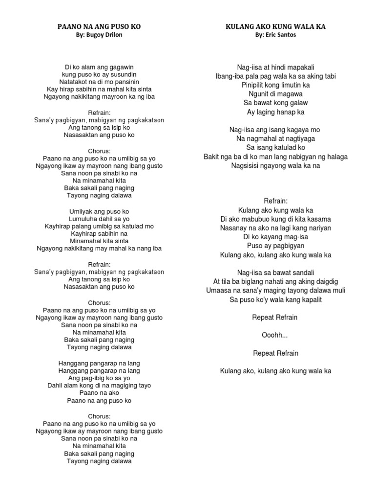 Paano ang puso kong ito Ngayong lumisan ka sa buhay ko. Pano nang mga bukas ko. There are 60 lyrics related to Paano Ang Puso Ko Kung Wala Ka.